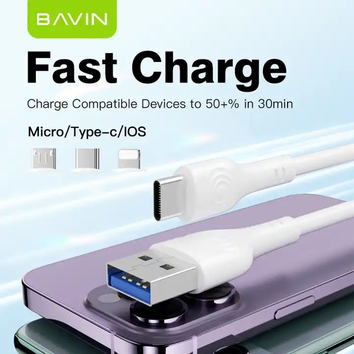 BAVIN 18W Fast Charging Transmission TPE Connector Cell Mobile Phone USB Power Lightnings Type-c Micro Cable Data Cables CB280