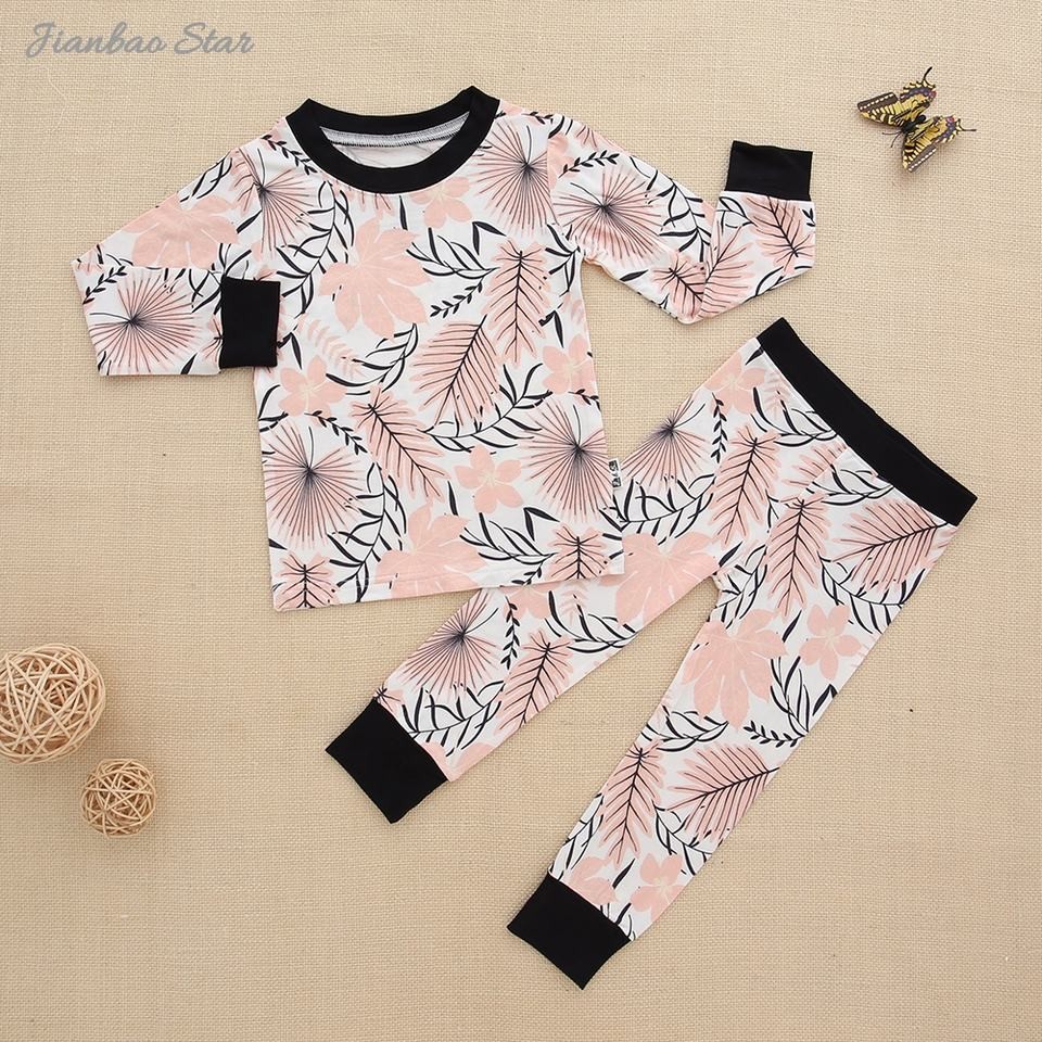 Custom Printed Designs Bamboo/Cotton Baby Pajamas Suits Set Kids Clothing Factory Eco Friendly 2 Pcs Long Sleeve Casual Baby Set